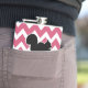 This fun and trendy item features the black silhouette of a squirrel on a pink and white chevron background!