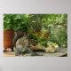Photographic art of a quiet backyard scene of a squirrel feeding on a bench rich in textures, blooms and colors. Available in various sizes and with framing available. By Dwight Bennett from NatureWorld Art.