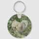 This cute keychain features a photograph of a cute fluffy grey squirrel clutching an acorn and sitting in a tree in the forest.