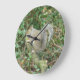 This awesome clock features a photograph of a cute fluffy grey squirrel clutching an acorn and sitting in a tree in the forest.