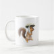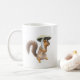 A squirrel holds a mushroom like an umbrella on this cute wildlife mug.