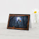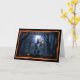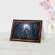 This whimsical Halloween card features an adorable yet slightly spooky squirrel holding a small jack-o'-lantern in its paw. Set against a backdrop of a dark, eerie forest illuminated by the light of a full moon, the scene captures the mysterious ambiance of Halloween night. The squirrel, standing on its hind legs, appears ready to join in the Halloween festivities, surrounded by a few scattered pumpkins on the forest floor. The card is bordered with a jagged orange edge, adding a pop of color that contrasts with the dark background. The message "Happy Halloween" is displayed at the top in a playful, slightly eerie font that complements the overall theme. This card is perfect for those who enjoy the fun, slightly spooky side of Halloween and appreciate a touch of nature in their holiday greetings.