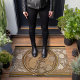 Embrace the timeless beauty of art with this exquisite door mat, featuring two whimsical squirrels indulging in their nutty treats, enveloped by the rich, burnt sand/brown art deco framework inspired by renowned artists Walter Crane and Charles Rennie Mackintosh. Crane, often hailed for his contribution to the Arts and Crafts movement, introduced us to a world where every detail is steeped in symbolic meaning and aesthetic purpose. Mackintosh, on the other hand, seamlessly blended strong right angles with floral-inspired, gentle curves, creating designs that are not only visually stunning but also deeply evocative of nature and geometry in harmony. This door mat delicately intertwines the philosophies of both artists, creating a piece that’s not merely a utility, but a conversation starter. The faded colors are meticulously chosen, not only to portray a vintage allure but also to enliven and harmonize any décor, acting as a cohesive focal point that subtly bridges modern design elements with classic artistic charm. Suitable for any modern home, this mat isn’t simply a piece of home décor, but a homage to the perpetual beauty and innovative spirit embodied by Crane and Mackintosh. Imbue your space with an element of classic artistry and contemporaneity, ensuring that every entrant is welcomed with a masterpiece beneath their feet.