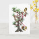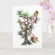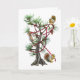 Three squirrels decorate the tree with cranberry garlands. celebrate the holidays with this unique holiday card.