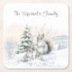 Squirrels in Winter Snow Square Paper Coaster