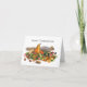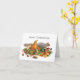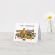A squirrel presents a bounty of harvest fruits and nuts on a pile of lichen on this fun Thanksgiving card.
