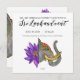 The lotus flower, vibrant purple with hints of deep violet and gold accents in the center, is positioned on the left side of the image. The details are painted with a watercolor-like effect.