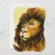 Watercolor illustration of a Sri Lankan flag's lion with a flowing mane, depicted holding a stylized sword. The lion’s expression is focused, with detailed facial features. The sword has a curved blade with intricate designs and a prominent grip. A yellow circular background highlights the figure, enhancing its regal and emblematic appearance.