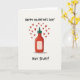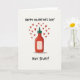 This Valentine's Day card features a stylized red hot sauce bottle in the center with a dark green squeeze-top, like a classic Sriracha-style bottle. Above the cap, several small red hearts float upward, giving the scene a sweet, “you’re hot” kind of feeling ❤️. The bottle has a simple white label with no brand name, keeping the focus on the message instead of a specific product. At the top of the card, the text “HAPPY VALENTINE’S DAY!” appears in a casual, thick script, standing out clearly against the off-white background. Near the bottom, “HOT STUFF!” is written in the same style, like a fun punchline to the picture 💌. The limited colors—red, green, white, and off-white—make the design easy to read and instantly recognizable, with a friendly, flirty tone 🍫.