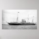 This graceful American liner was built in 1888. She held the Blue Riband at two different times in her career. In this picture she is leaving the port of New York. You can see part of the Statue of Liberty behind her. The ship flies the flag of a US Mail Steamer. She also flies the Red Ensign from her foremast. I have no idea why. I also have no idea why a civilian vessel underway would fly the Union Jack on her bowsprit.