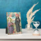 + In the Confessions, SS. Monica and Augustine stood at a window overlooking an interior central garden of a typical peristyle Roman house. In this splendid image, they are depicted deep in conversation on a porch overlooking the sea. Seated on a marble bench, St. Monica is dressed in a violet mantle with an emerald green lining over a reddish-pink robe. She wears a white veil and her head is surrounded by a halo in emerald green with yellow-green rays. She gestures animatedly with both hands raised in the rhetorical gesture of supplication or solemn entreaty toward her son. St. Augustine is anachronistically tonsured and dressed in the black habit of his—the Augustinian—order. A priest’s black galero--a low-crowned, wide-brimmed ecclesiastical hat--lays on the bench behind him. He would not live the monastic life nor become a priest until after his return to Africa (in c. 388 and 391, respectively). Focused on spiritual matters, St. Augustine’s eyes are lifted toward heaven. His right hand rests on the balustrade and his left is raised in the rhetorical gesture calling for silence. He is bearded and his head is surrounded by a halo in dark reddish-pink with rays in a lighter shade of that color. Heavenly beams of soft yellow light shine down on the figures of the two saints through gray-violet clouds in an aqua blue beamed sky. Taken as a whole, the scene telescopes the saints’ mother-son relationship: St. Monica’s entreaties to Augustine to mend his ways (the past); the intimate conversation on spirituality at Ostia (the present), and St. Augustine’s commitment to the religious life (the future). + Five days later, St. Monica--her heart’s desire achieved, her earthly work finished--contracted a fever. She died at Ostia following a nine-day illness. + Feasts: August 27 (St. Monica) and August 28 (St. Augustine) + Image Credit (SAU 047): Antique devotional print in chromolithography of SS. Monica and Augustine entitled Loquebantur soli valde dulciter [‘They spoke alone together sweetly’], originally published by the Socièté de St. Augustin, Bruges, Belgium, late 19th century, from the designer’s private collection of religious ephemera.