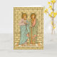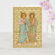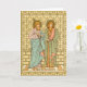 A blank card for you to personalize with your handwritten or typed text... + Except for their Apostleship, there is little in the Gospels to link St. Philip and St. James the Less. The reason these Apostles celebrate a joint feast is circumstantial: Their earthly remains—or at least portions of them--are kept together in a church in Rome, Italy, dedicated to them on 1 May ?560. + Both the church and the feast have overgone considerable changes since then, however. Today the church, a minor basilica, is dedicated to *all* of the Apostles and is known as the Church of the Twelve Holy Apostles (Basilica Santi Apostoli in Italian). And, under the current General Roman Calendar the feast is held on May 3, the date having been shifted in 1955 when Pope Pius XII instituted the Feast of St. Joseph the Worker, an Optional Memorial which coincides with May Day (International Workers' Day). + Prefer a solid colored border? Simply delete the tiled graphic. Solid color recommendations appear below. + Image Source (RLS 15): Antique image of SS. Philip and James (the Less) from Red Letter Saints: Being a Series of Biographies of those Saints for which Proper Collects, Epistles and Gospels are appointed in the Book of Common Prayer (London: Society for Promoting Christian Knowledge, 1911), p. 35 (designer’s personal library). + Feast: May 3 + The ‘Red Letter Saints’ palette is the same for all nineteen images from the book with minor variations. It consists of the following colors (with hex codes): cream (#FEEFBE), medium yellow (#F1D168), medium yellow-green (#999954), medium light aqua (#ACCBB1), medium dark aqua (#8CAC98), mauve (#E6BEA5), salmon pink (#FAAE8B), peach (#F5BD94), brownish orange (#E48B11), beige (#E8C6A1), dark gold (#87722E), and dark red-brown (#460000). Choose as you will!