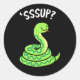Sssup Funny Hissing Snake Pun Dark BG Classic Round Sticker