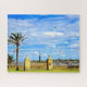 The photo image on this beautiful jigsaw puzzle features a sign for Castillo de San Marcos National Monument along the waterfront in St. Augustine Florida. Sailboats can be seen anchored in Matanzas Bay. The blue sky with puffy white clouds, a soaring bird, and the backdrop of luxury homes on Anastasia Island complete the picturesque scene. Historic Saint Augustine is the oldest city in America. Puzzle available in various sizes. Makes a great gift for teachers, students, children/grandchildren, the elderly, host/hostess, neighbors, history buffs, boaters, or any Florida resident. Please browse our complete collection of St Augustine products and Florida themed jigsaw puzzles. Photography by Glenda Motsavage, a Florida-based travel writer and author.