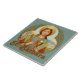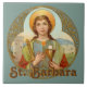 Image Credit (BK 001): Antique image of St. Barbara of Nicomedia from a late 19th-early 20th century chromolithographic devotional print, originally published by B. Kühlen, Mönchengladbach, Germany, from the designer’s private collection of religious ephemera. + Feast: December 4 + This St. Barbara roundel has a rich color palette. Suggested colors (with their hex codes) for backgrounds and texts include: gold (#8C762F), light aqua (#C3D9C6), medium aqua (#7A988E), dark aqua (#537781), light yellow orange (#DDA943), dull medium orange (#D57F11), chartreuse green (#B5A72D), dull blue grey (#7F9189), rust red (#B32A02), and yellowish beige off white (#DCD3AA). Here, in addition, basic brown (#613B1B) is used for the text.