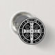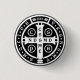 Based on the Medal of St. Benedict, this button features the cross side which is decorated with the acronyms of Latin exorcism prayers... CSSML: Crux sacra sit mihi lux (May the holy cross be my light) NDSMD: Nunquam draco sit mihi dux (May the dragon never be my guide) CSPB: Crux Sancti Patris Benedicti (The cross of our holy father Benedict) PAX: (peace) V R S N S M V - S M Q L I V B: Vade retro Satana! Nunquam suade mihi vana! Sunt mala quae libas. Ipse venena bibas! (Begone Satan! Never tempt me with your vanities! What you offer me is evil. Drink the poison yourself)