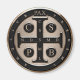 The round magnet is a very good product. The excellent design of this particular Cross of St. Benedict is unique, following the content of the original but altering the appearance with a modern style. It actually looks like an engraved steel badge! Excellent print quality for all characteristics. The image style translated perfectly into a printed image that really seems to be embossed.