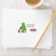 On these return address labels is an image of a St Bernard dog wearing a red and white Santa hat. The dog sits among brightly wrapped gift packages beside a decorated Christmas tree. A bullfinch bird is landing on the tree behind it. Your custom text is in green at the right of the image, and stylized text at the bottom says MERRY CHRISTMAS".