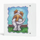 Animal Parade Cute St. Bernard Dog Vinyl Binders created by Imagine That! Design features our cute tan and white dog character standing in a grassy yard with a red brick fence, a textured blue sky and a playful wavy purple border painted by our talented children's book artist, Traci Van Wagoner. The fun pup stands in play position with one paw raised. This fun pet art is perfect for St. Bernard dog lovers and humorous animal art lovers of all ages. On many of our whimsical St. Bernard doggy products you'll find this cute puppy coming and going with the playful Saint Bernard dog's head on one side and the funny dog's tail on the other. Join the Animal Parade and bring a smile to the face of someone you love with a gift of our cute St. Bernard dog. Woof!