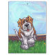 Animal Parade Cute St. Bernard Dog Clipboard created by Imagine That! Design features our cute tan and white dog character standing in a grassy yard with a red brick fence, a textured blue sky and a playful wavy purple border painted by our talented children's book artist, Traci Van Wagoner. The fun pup stands in play position with one paw raised. This fun pet art is perfect for St. Bernard dog lovers and humorous animal art lovers of all ages. On many of our whimsical St. Bernard doggy products you'll find this cute puppy coming and going with the playful Saint Bernard dog's head on one side and the funny dog's tail on the other. Join the Animal Parade and bring a smile to the face of someone you love with a gift of our cute St. Bernard dog. Woof!