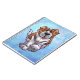 Animal Parade Cute St. Bernard Dog Photo Notebook created by Imagine That! Design features our cute tan and white dog character standing in a grassy yard with a red brick fence, a textured blue sky and a playful wavy purple border painted by our talented children's book artist, Traci Van Wagoner. The fun pup stands in play position with one paw raised. This fun pet art is perfect for St. Bernard dog lovers and humorous animal art lovers of all ages. On many of our whimsical St. Bernard doggy products you'll find this cute puppy coming and going with the playful Saint Bernard dog's head on one side and the funny dog's tail on the other. Join the Animal Parade and bring a smile to the face of someone you love with a gift of our cute St. Bernard dog. Woof!