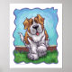 Animal Parade Cute St. Bernard Dog Poster Paper created by Imagine That! Design features our cute tan and white dog character standing in a grassy yard with a red brick fence, a textured blue sky and a playful wavy purple border painted by our talented children's book artist, Traci Van Wagoner. The fun pup stands in play position with one paw raised. This fun pet art is perfect for St. Bernard dog lovers and humorous animal art lovers of all ages. On many of our whimsical St. Bernard doggy products you'll find this cute puppy coming and going with the playful Saint Bernard dog's head on one side and the funny dog's tail on the other. Join the Animal Parade and bring a smile to the face of someone you love with a gift of our cute St. Bernard dog. Woof!
