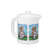 Animal Parade Cute St. Bernard Dog tea pot created by Imagine That! Design features our cute tan and white dog character standing in a grassy yard with a red brick fence, a textured blue sky and a playful wavy purple border painted by our talented children's book artist, Traci Van Wagoner. The fun pup stands in play position with one paw raised. This fun pet art is perfect for St. Bernard dog lovers and humorous animal art lovers of all ages. On many of our whimsical St. Bernard doggy products you'll find this cute puppy coming and going with the playful Saint Bernard dog's head on one side and the funny dog's tail on the other. Join the Animal Parade and bring a smile to the face of someone you love with a gift of our cute St. Bernard dog. Woof!