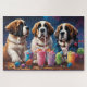 St Bernard Puppies Party and Milkshakes Jigsaw Puzzle