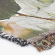 A quality printed throw has its advantages. This is a much finer weave throw than its loopier cousins, and though lighter, it is worth the investment for custom room accessorizing. The back is much prettier than the typical brown, and the fringe on the long sides very vivid, the selvage nicely done. Before photographing, I washed the throw in cold water, delicate, with a thicker woven throw the same size. On tumble dry low, this throw was dry in half the time as the other. This is a very practical quality if you use throws for furniture covers or to wrap up in frequently. The sleekness of the fabric makes it a great layer for accenting or protecting without the feeling of sitting on too much stuff. Perfect for napping or when you feel a light chill coming on. The color printing is beautiful and on this fabric, matched the design and color of my Photoshop image. This is an advantage for blending room fabrics and colors. The fringe on the short sides prints the colors from the design image and therefore varies from the side fringe. I streaked a white fractal line through the plaid pattern to give the illusion of weaving. This printed as crisp as an illusory thread, and put some white in the short side fringe, showing another advantage of print vs loomed- for artistic purposes, line lines, detail, and color integrity can be planned and preserved. My loomed throws have color limitations and more of a needlepoint texture. Print throws reproduce an exact image. The throw felt a little stiff straight out of the package, but this went away in the first delicate wash. Of course I searched the wash water for ink or bleeding and there was none.