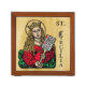 St. Cecilia with Hymn Board is a modern colorized version of an antique woodcut from The Nuremberg Chronicle (Liber Chronicarum). Written by Hartmann Schedal, The Chronicle is an illustrated, encyclopedic account of world history to the end of the 15th century (and beyond to the Last Judgment). Its content was derived from mythology, the Bible, and various Medieval Chronicles. It was published in the city of Nuremberg by Anton Koberger in July 1493 in Latin and, a few months later, in December, in vernacular German. The Chronicle is especially noteworthy for its unprecedented use of illustrations: 645 original woodcuts were produced for its publication. While many woodcuts were reused more than once in the text with the captions simply changed, nevertheless, the volume boasts 1089 pictures in toto. Some copies have contemporary hand-colored illustrations. + In the original editions of The Chronicle, St. Cecilia's image faces left, a mistake by the artisan who cut the woodblock after the artist's original design. Thus, the text 'reads' backward. We have flipped the image so that St. Cecilia faces right and the writing on the Hymn board is correctly depicted even though illegible. + Despite her private vow of virginity, St. Cecilia was forced into an arranged marriage--never consummated--with a pagan named Valerian. It is said that on her wedding day, St. Cecilia “sang in her heart to the Lord” instead of reveling with her guests. As a result, long before she was associated with organs in art, an iconographical tradition that arose in Italy in the 14th century and was based perhaps on an erroneous reading of a line in her Passio, St. Cecilia was associated with singing and singers. Hence, this 15th-century German illustration gives her a hand-held Hymn board as an attribute. As here, such handheld boards originally bore the opening lines of a hymn that would be sung during a religious service. Today's freestanding or wall-hung Hymn boards are posted with numbers instead, numbers that coincide with a given congregation's hymnal. + Feast: November 22 + Image Credit (St. Cecilia with Hymn Board): This colorized version of the Nuremberg woodcut is a Saints_Aplenty Exclusive (SAE).