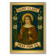 This Catholic wedding table card features Saint Clare of Assisi, radiant in a vintage devotional style, holding a golden monstrance and cross — symbols of her profound Eucharistic love and fearless faith. Surrounded by lilies of purity and framed with elegant golden scrollwork, this image reflects her deep spiritual beauty and trust in Divine Providence.