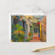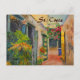 This gorgeous postcard features an adaptation of a fine art painting of a small street in St. Croix, Virgin Islands, by the American artist, Anna Unterman. The bright, sunny scene is a riot of colors. There is a red, pink and magenta bougainvillea vine over the archway as well as orange flame vines and other green shrubs and leaves. The colorful buildings are yellow, gold, blue and green. Reprinted with permission from the estate of Anna Unterman. All rights reserved. The cover text reads: St. Croix. It can be customized or removed.