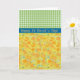 A pretty Greeting Card for St David's Day, with a pattern of golden daffodils, from a handpainted watercolour design by Judy Adamson, teamed with a coordinating green check gingham pattern.