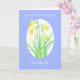 A pretty Greeting Card for St David's Day, 'From All of Us', with a clump of daffodils in a light blue border, from a watercolour painting by Judy Adamson.