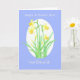 A pretty Greeting Card for St David's Day, 'From Both of Us', with a clump of daffodils in a light blue border, from a watercolour painting by Judy Adamson.