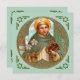 St. Dominic de Guzman (1170-1221) was a Castilian Spanish priest who founded the mendicant Order of Preachers (Dominicans). A short biography with a list of patronages can be found at catholicsaints.info/saint-dominic-de-guzman/ + Image Credit (BK 07): Adaptation of an antique image of St. Dominic de Guzman from a late 19th-early 20th century chromolithographic devotional print, originally published by B. Kühlen, Mönchengladbach, Germany, from the designer’s private collection of religious ephemera. The roughly trefoil image here has been combined with St. Barbara’s frame (BK 001). Publishers often adapted existing images in like manner.