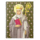 St. Etheldreda (or Audrey; c. 636-679) is one of the most popular medieval English saints in Britain. She was born an East Anglian princess, became Queen of Northumbria, and died a nun. Widowed once and married twice for reasons of State, nevertheless, she remained a virgin. When her second husband began to press for his marital rights, she sought the counsel of St. Wilfred, Archbishop of York, who advised her to become a nun and abetted her vocation. She made her vows at Coldingham in 672. In the ensuing years, she founded a great double monastery for both men and women at Ely, Cambridgeshire, over which she presided as abbess. In little more than four centuries, in 1109, the site of her abbey at Ely would be constituted a Cathedral. She died of a painful throat ailment in 679. + Here, St. Etheldreda (Audrey) is depicted as abbess, having laid aside her royal robe with its ermine lining, scepter, and secular crown which appear on the floor at her feet (not visible in this detail). She now wears a rayed crown tipped with stylized flowers. In her right hand, she holds a book; in her left, her abbess’s crosier with its sudarium or ‘sweat cloth’ used to prevent discoloration of the staff’s metal shaft by a sweaty palm. Ordinarily, she holds a model of Ely Cathedral and a budding rod or lily of purity. + Feast: June 23 + Image Credit (P 003): Detail of an antique image of S[t].Etheldreda.A[bbess].V[irgin]. from a late 19th-century devotional print in chromoxylography, originally published by Friedrich Pustet, Regensburg, New York, and Cincinnati. From the designer’s private collection of religious ephemera.