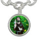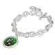 This charm bracelet features St. Francis of Assisi. Born in Assisi in 1182, he was a living manifestation to the world of Christ's poor and suffering life on earth. He is known to be the patron saint of animals and the environment. He was the founder of the Order of Friars Minor, more commonly known as the Franciscans. Here Saint Francis is portrayed with two white doves in a green field of yellow wildflowers.