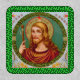Image Credit (JMAS 04): Antique image of St. James the Greater from a late 19th century devotional print in chromolithography with gilt accents originally published by Josef Müller, Art Publisher, Munich, Germany, from the designer’s private collection of religious ephemera. The image is one of twelve in the publisher’s Apostle Series (No. 12155). + St. James is holding a pilgrim’s staff with a hook for suspending a water flask. + Feast: July 25