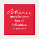 Hand designed artwork of inspirational phrase from St. John Bosco in white text. Choose your design theme color or Choose the Customize button for additional background color choices. Phrase reads: "Patience smooths away lots of difficulties. - St. John Bosco"