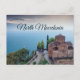 This postcard features St John the Theologian in North Macedonia. It is a Macedonian Orthodox church overlooking Lake Ohrid in the city of Ohrid. It's also known as St John at Kaneo or Church of St John of Patmos. Although the actual date of construction is unclear, documents regarding the church property suggest that it was built before the year 1447.