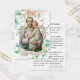 This is a beautiful religious custom designed vintage Catholic image of St. Joseph holding the Baby Jesus with peach and eucalyptus floral background.