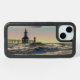 OtterBox iPhone Case featuring a mixed media photo of fierce waves crashing along St Joseph North Pier Inner and Outer Lighthouses in St Joseph, Michigan, United States.