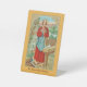 St. Joseph is traditionally associated with woodworking. In this image, he is shown on break, deep in thought, and leaning on his axe. A recently shaped beam lies across his workbench with wood chips scattered on the ground beneath. Although we have little in the way of direct testimonials, we infer from Matt. 1:19 that as a “just” or “righteous” man St. Joseph was a model worker embodying such virtues as reliability, efficiency, and industry as he went about his daily tasks. His attitude here is far from servile but rather suggests a dignity and sense of accomplishment in using his God-given abilities to be of service to his community as he provides for his family. + By virtue of his traditional occupation as a carpenter, St. Joseph is patron saint of artisans and laborers. In 1955, Venerable Pope Pius XII instituted a special feast, the feast of “St. Joseph the Worker”, to be celebrated on May 1. Its liturgy emphasizes the right to work and the dignity of labor. + Image Credit (BK 31): Antique image of St. Joseph the Worker from an early 20th-century devotional print in chromolithography originally published ca. 1909 by B. Kühlen, at Mönchengladbach, Germany, from the designer’s private collection of religious ephemera. + Feast: May 1; Principal Feast: March 19 + Prefer a different color scheme? The Color Palette postcard for this image provides suggested coordinating hues. Color Palette postcards are found in an image's associated COLLECTION and in the Special COLLECTION devoted just to color palettes.