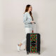The luggage itself is awesome. So much utility for a carry-on bag. Lots of zippered pouch compartments to keep everything from getting everywhere. And it has a TSA approved lock and a dust cover! Love it. The printing is terrific. Love the way it wraps around the top and bottom. So happy the bumpers, wheels and handle color matches the design perfectly. She's gorgeous.