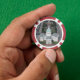 A poker chip featuring two photos taken in St. Louis, Mo. The Arch and the courthouse.