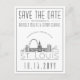 A unique wedding save-the-date postcard for a marriage taking place in the beautiful and historic city of St. Louis, Missouri. This invitation features a stylized illustration of the city's unique skyline with its name underneath. This is followed by your wedding day information in a matching open lined style. On the reverse side of the post is your address information. All individual elements of the invite card are unlocked so feel free to change any details necessary such as font sizes, styles and more by using the customization function. Have fun being creative and making it your own!