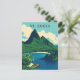 Immerse yourself in the beauty of St. Lucia, with this retro postcard showcasing the island's signature turquoise waters, vibrant coral reefs, and the majestic Pitons. Famous for its luxury resorts, lush rainforests, and captivating culture, St. Lucia offers a perfect mix of relaxation and adventure. This vintage-style postcard captures the island’s charm and invites you to explore its hidden beaches, rejuvenating hot springs, and welcoming tropical allure, making it an unforgettable Caribbean destination