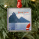 A view from a boat of clouds moving in, as St. Lucia's famous twin peaks, the Pitons, rise out of the Caribbean Sea