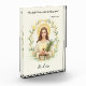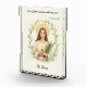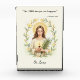 This serene design honors St Lucy, virgin and martyr, known as the patron saint of those with eye disorders and a symbol of light in the darkness. Surrounded by soft florals and radiant light, her image reflects purity, faith, and spiritual clarity.